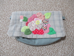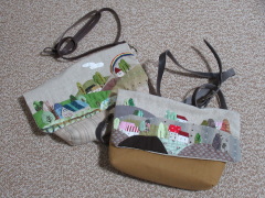 《左》ポシェットです。ふたの部分に小さな家や木などをアップリケ!