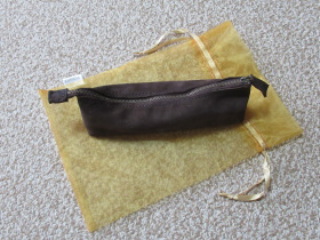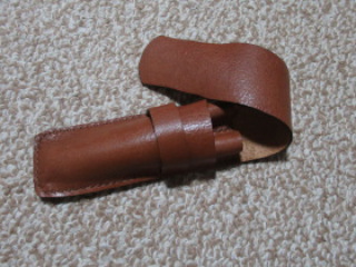 《右》ペンケース:しっかりした革で作ったもの。ペンは2本入ります。