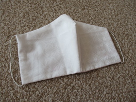 これは、テレビ(NHK)で放送されていた作り方を少し変更して作ったものです。白い外側の布とガーゼ(3枚重ね)を、別々に縫ってから切り、合わせるだけでできる簡単な方法です。(型紙も不要)これで、花粉も防げるそうですし、咳エチケットのためにも大丈夫だと言っていました。