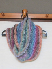 出来上がったものは、自分で使ったりプレゼントしたり、また、譲ってほしいと言われて材料費だけ頂いてお渡ししたものもあります。そのうちスヌードも編みました。要領は全く同じで、輪針でひたすら編みます。こちらは太い毛糸を使ったので、あっという間に仕上がりました。「暇があったら編んでるなぁ」と夫に呆れられながら、楽しくてずっと手を動かしていました。