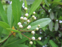 調べてみると、このごま粒のような白いのは確かにピラカンサの花(左はつぼみ、右は花)でした。そして、秋になると、あの真っ赤な実がなります。しかも、その実は、年を越した春先まで長く楽しめるのだそうです。へぇ~、そうなのねぇ~~。毎年毎年花を咲かせ、実をつけていた庭のピラカンサなのに、何も知らなかった私でした(トホホ)。
